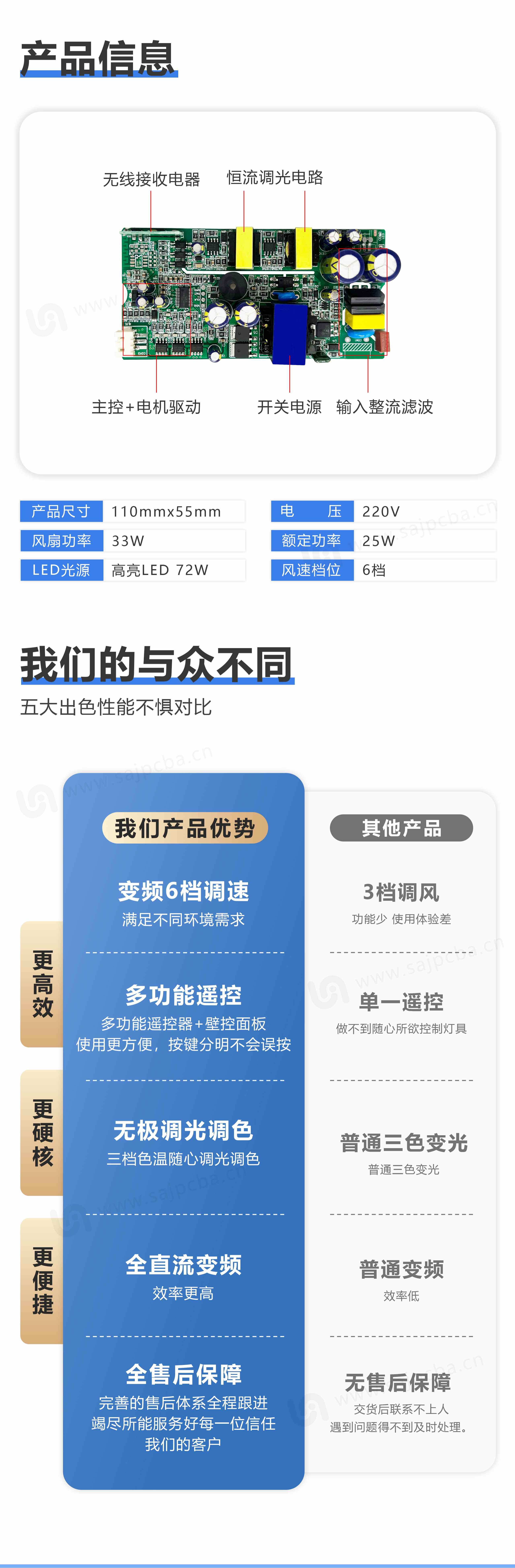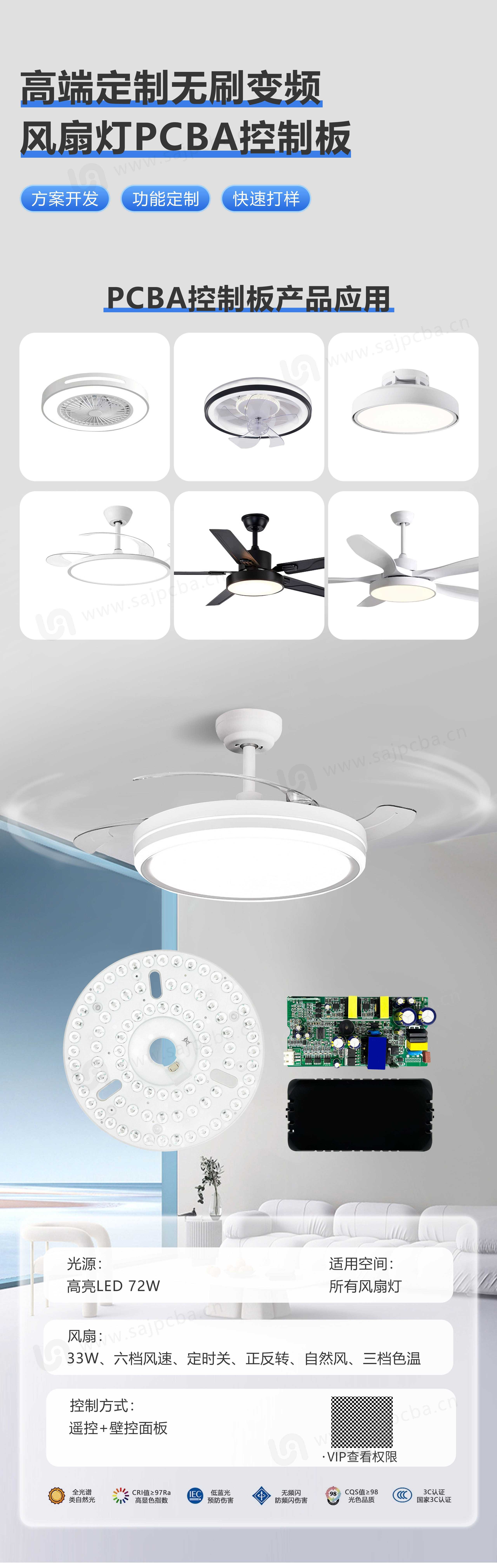 高端定制无刷变频风扇灯PCBA控制板